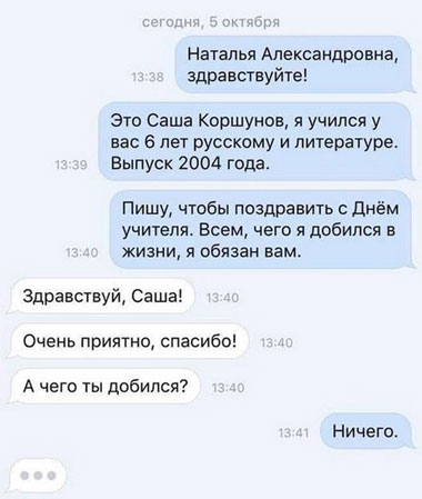 - Дочка, а почему ты вчера так поздно вернулась с выпускного? - Да я по пьяни трахнулась с двумя парнями. - ??? !!! - С 1 апреля, мам, я трезвая была.